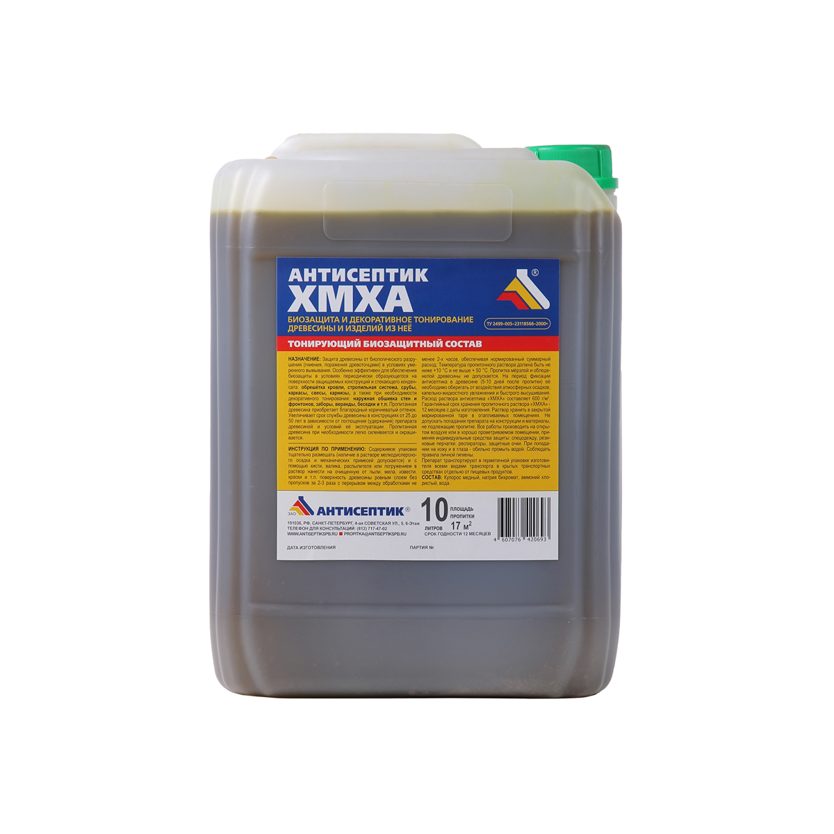 Антисептик ХМХА 10л. Защита древесины от биологических разрушений (гниение, поражения древоточцами) в условиях умеренного вымывания. Особенно эффективен для обеспечения биозащиты в условиях периодически образующегося на поверхности защищаемых конструкций и стекающего конденсата: обрешётка кровли, стропильная система, срубы, каркасы, свесы, карнизы, а также при необходимости декоративного тонирования: наружная обшивка стен и фронтонов, заборы, веранды, беседки и т.п. Пропитанная древесина приобретает благородный коричневый оттенок