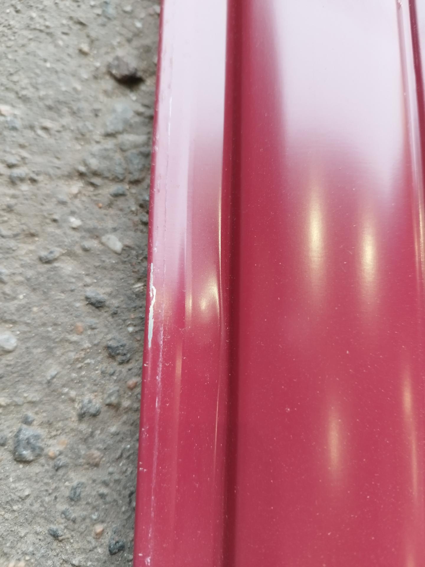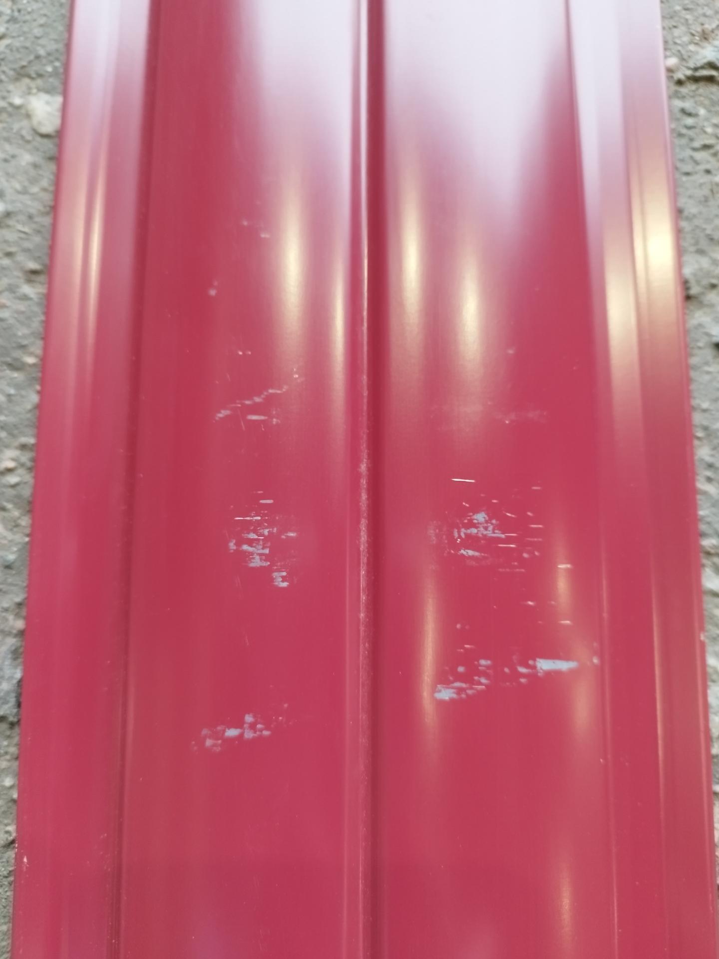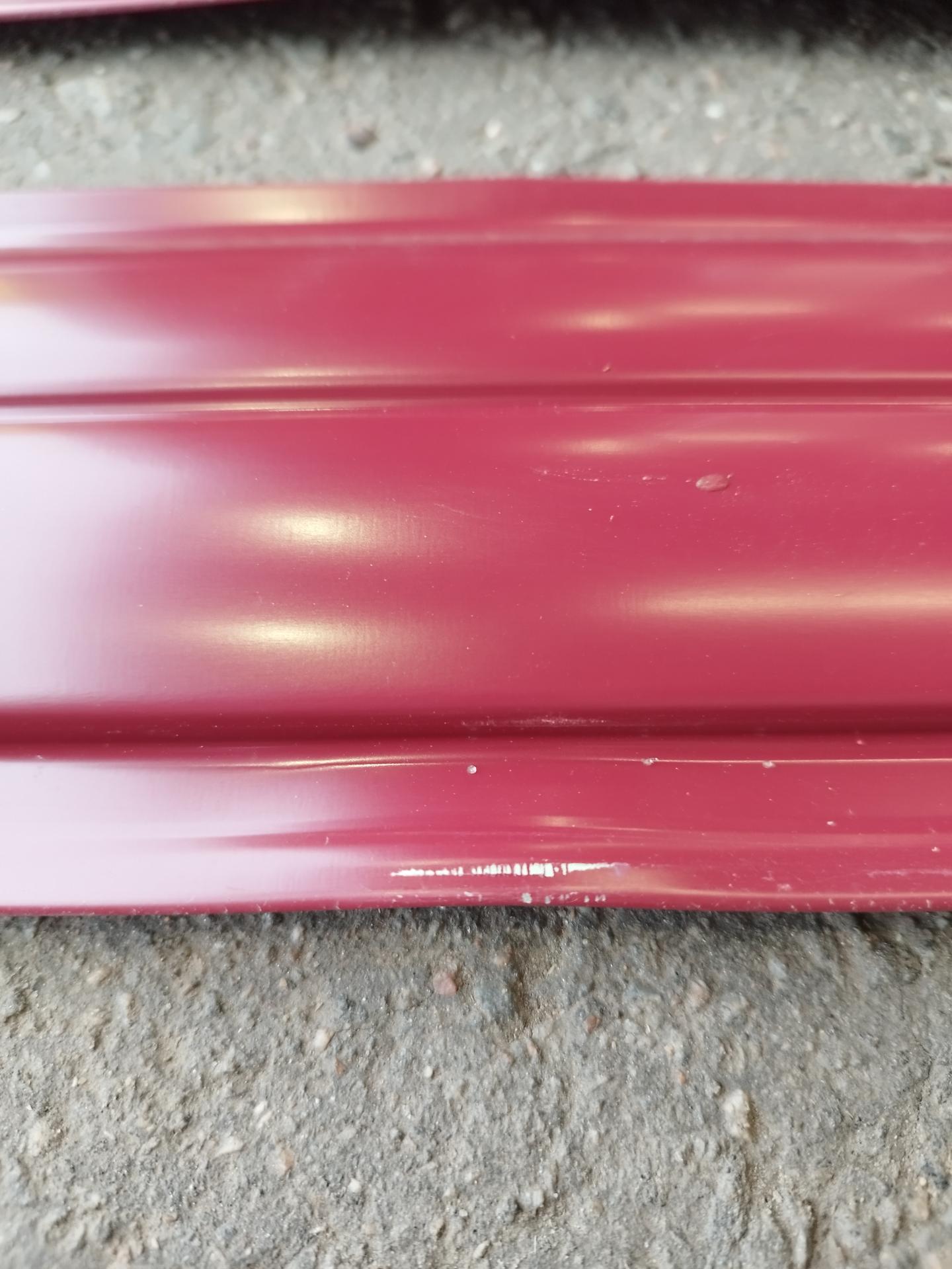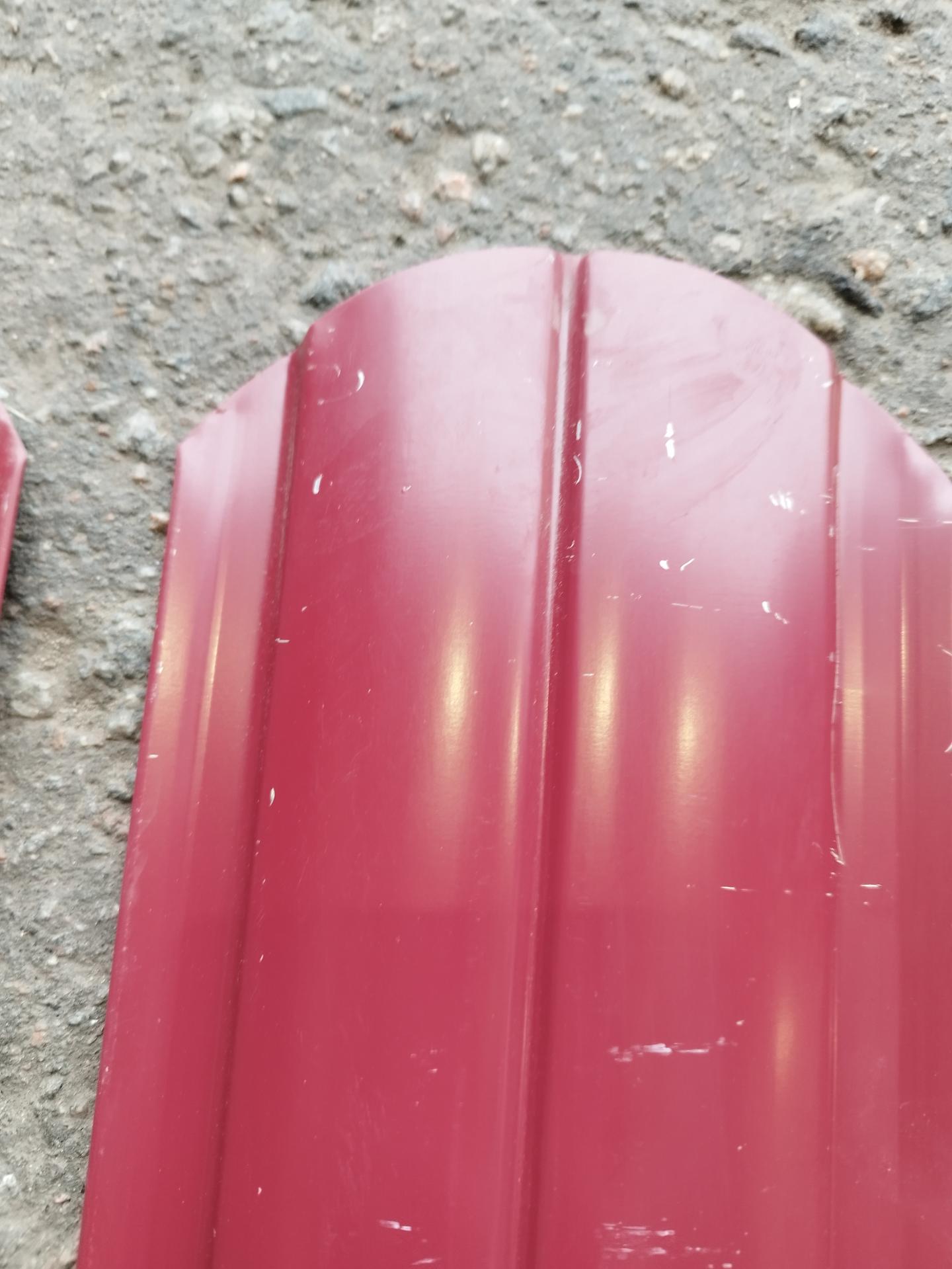 Все характеристики, изображения и описание товара "Штакетник R-образный (фигурный) 1800 мм винно-красный (RAL 3005) НЕКОНДИЦИЯ*" носят
