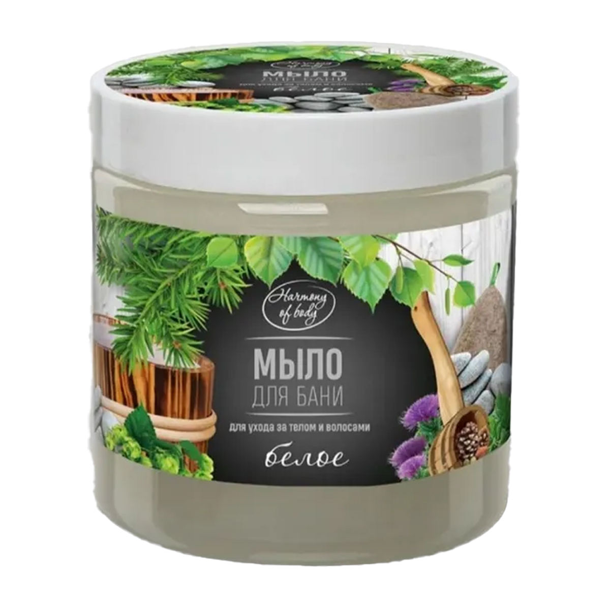 Все характеристики, изображения и описание товара "Мыло для бани белое Harmony of body 500 мл" носят