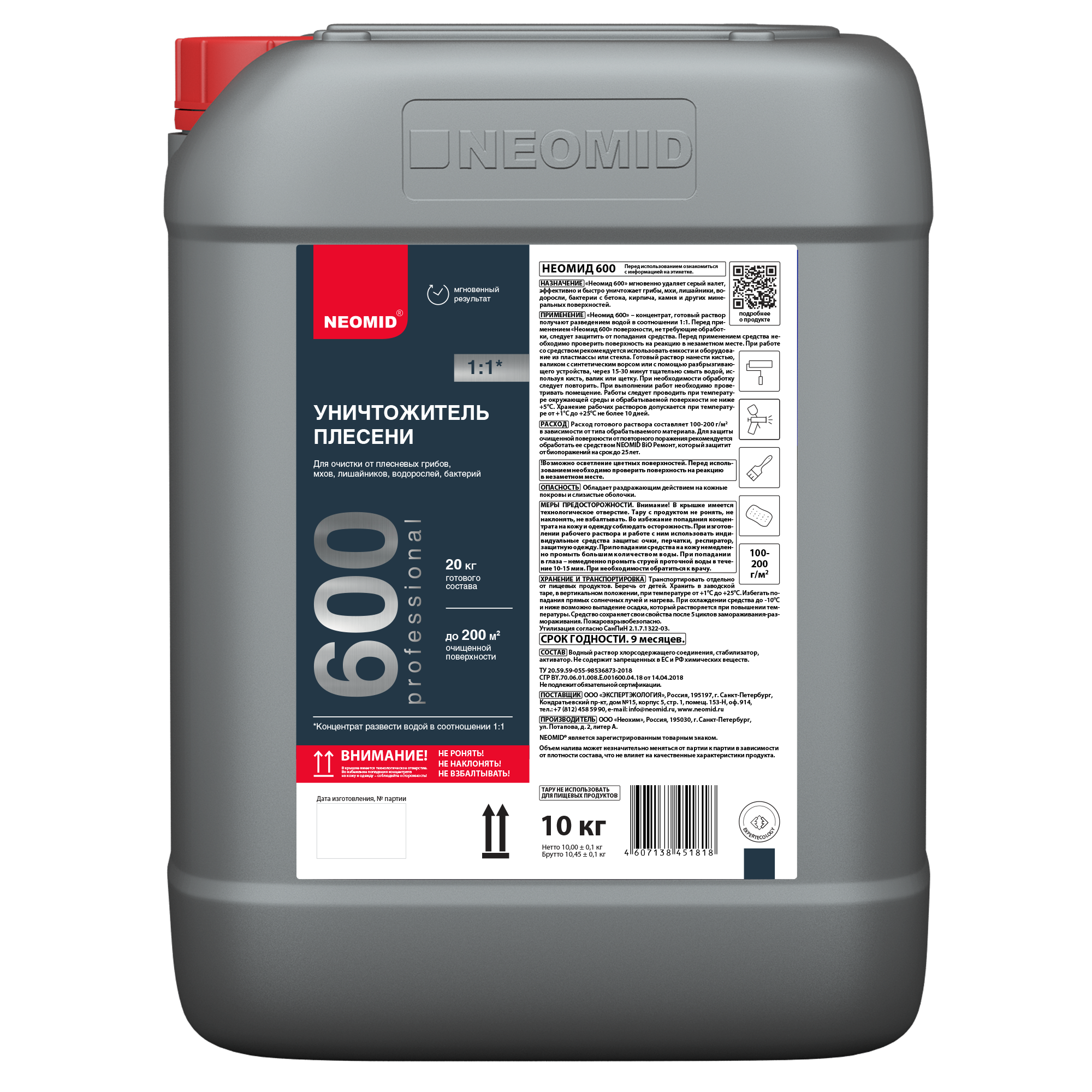 Все характеристики, изображения и описание товара "Средство для удаления плесени Neomid 600 (10 кг)" носят