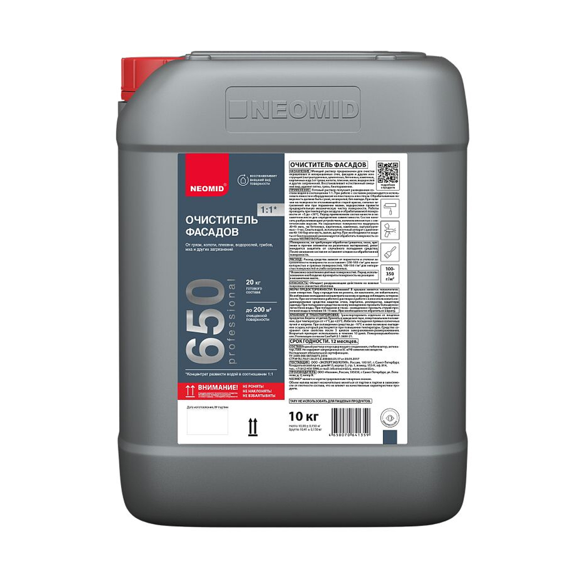 Все характеристики, изображения и описание товара "Очиститель фасадов Neomid 650 (10 кг)" носят