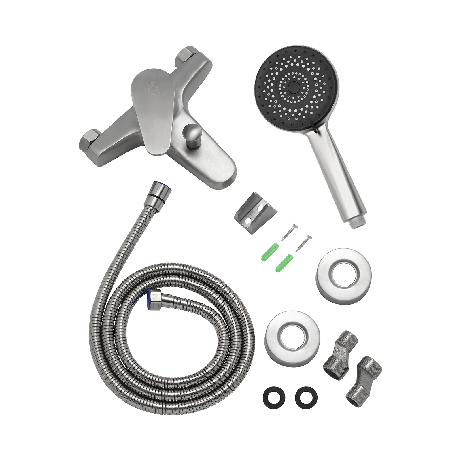 Смеситель для ванны AQUEDUC 345334 прямой излив нержавеющая сталь 160 мм (ручка литая) выполнен из нержавеющей стали, что является гарантией качества и долговечности, устойчив к царапинам, экологичен и безопасен для вашего здоровья. Поверхность не потеряет со временем свой роскошный вид, а уход за ней сводится к протиранию мягкой салфеткой. Установка смесителя крайне проста. В комплекте идут эксцентрики, отражатели, металлический шланг для душа 1,5м и лейка для душа.