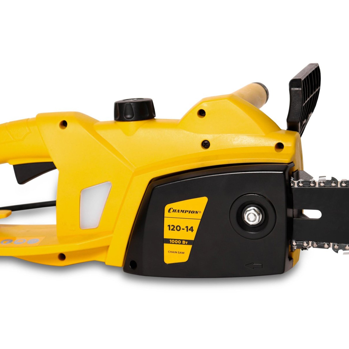 Электропила Champion 120-14 представляет собой лёгкую модель с поперечным расположением двигателя и впечатляющей мощностью 2000 Вт. Благодаря такой производительности инструмент легко справляется с вращением пильного полотна длиной 35 см. Прочный корпус выполнен в ярком жёлтом цвете, а продуманная конструкция включает специальный бак для смазочного масла с автоматическим насосом. Система автоматической смазки обеспечивает оптимальное скольжение полотна и защищает его от перегрева, что значительно продлевает срок службы инструмента.