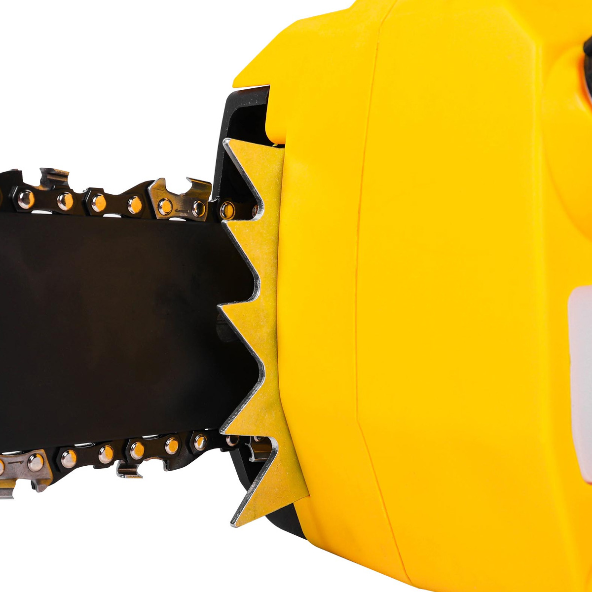 Электропила Champion 522N-18 (2200 Вт) оборудована современным двигателем мощностью с продольным расположением. Удобная конструкция включает специальную заливную горловину масляного бака с наклонным расположением, что существенно упрощает процесс заправки адгезионным маслом. Практичная система фиксации крышки бака со страховочным поводком предотвращает её потерю при откручивании. Дополнительным преимуществом служит наличие бесключевого натяжителя цепи на крышке шины, позволяющего регулировать натяжение без использования дополнительного инструмента.