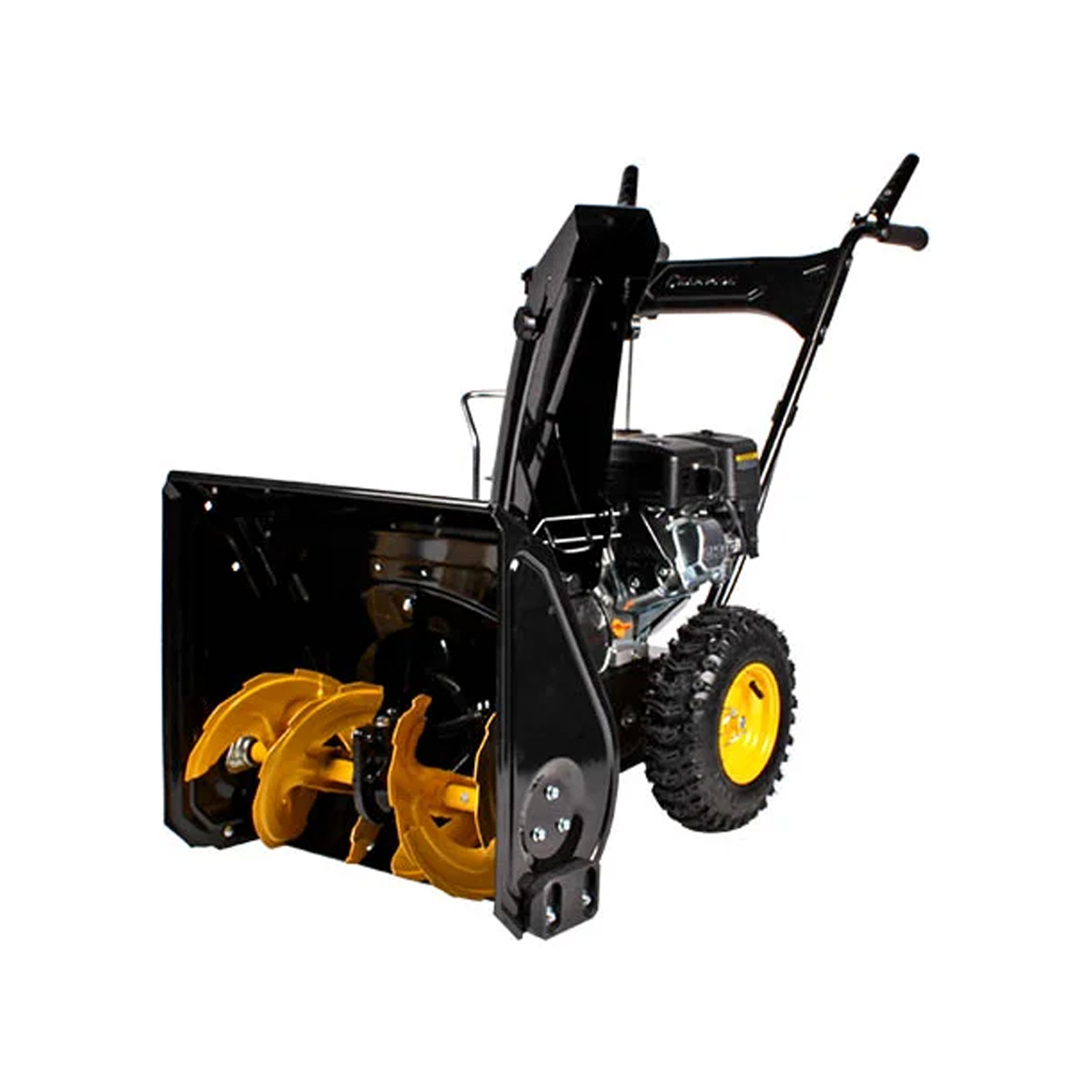 Устройство оснащено двухступенчатой системой шнеков из прочного металлического сплава, что позволяет справляться с любым типом снежного покрова. При этом дальность выброса снега достигает 11 метров, а отсутствие необходимости подключения к внешним источникам питания делает работу с агрегатом максимально удобной.