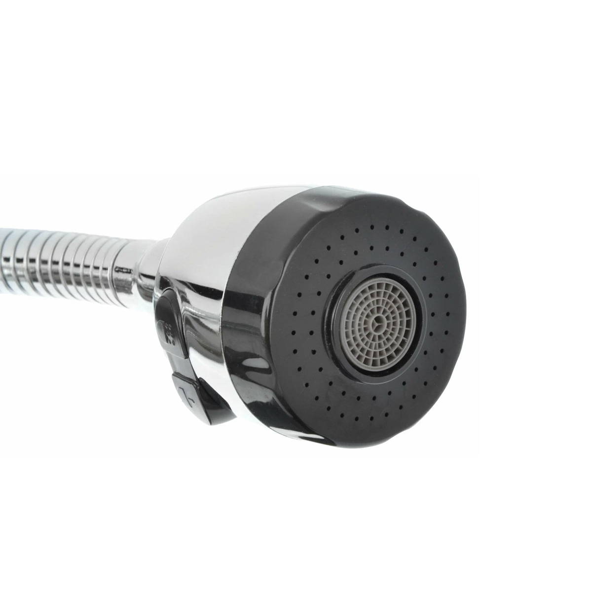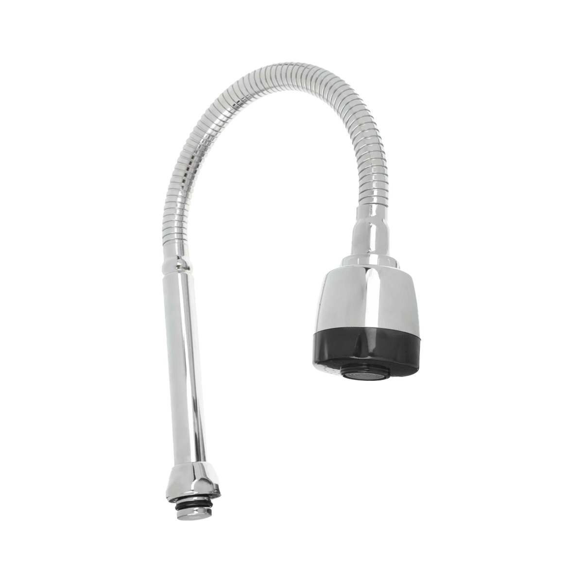 Гибкий излив смесителя для кухни из нержавеющей стали длиной 50 см с насадкой-душем и двумя режимами работы удобен для мытья овощей, фруктов и посуды. Благодаря гибкой конструкции излив можно настраивать под любым углом, что делает процесс мойки гораздо более комфортным и исключает разбрызгивание воды за пределы раковины. Работает в двух режимах, которые переключаются при помощи кнопок на насадке. Предусмотрен режим струи, а также душ-разбрызгиватель. Изделие не подвержено образованию коррозии и имеет надежное защитное хромированное покрытие.