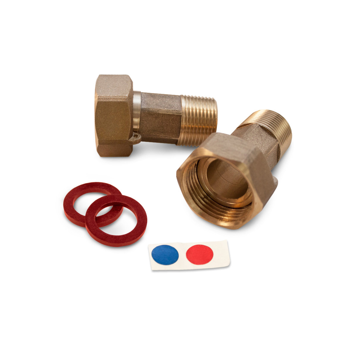 Комплект монтажных частей требуется для присоединения водосчетчика к трубе. В набор входит - две паронитовые прокладки 1/2, красная и синяя наклейка для обозначения холодной и горячей подачи воды, две гайки с внутренней резьбой 3/4 , два штуцера с наружной резьбой 1/2 .