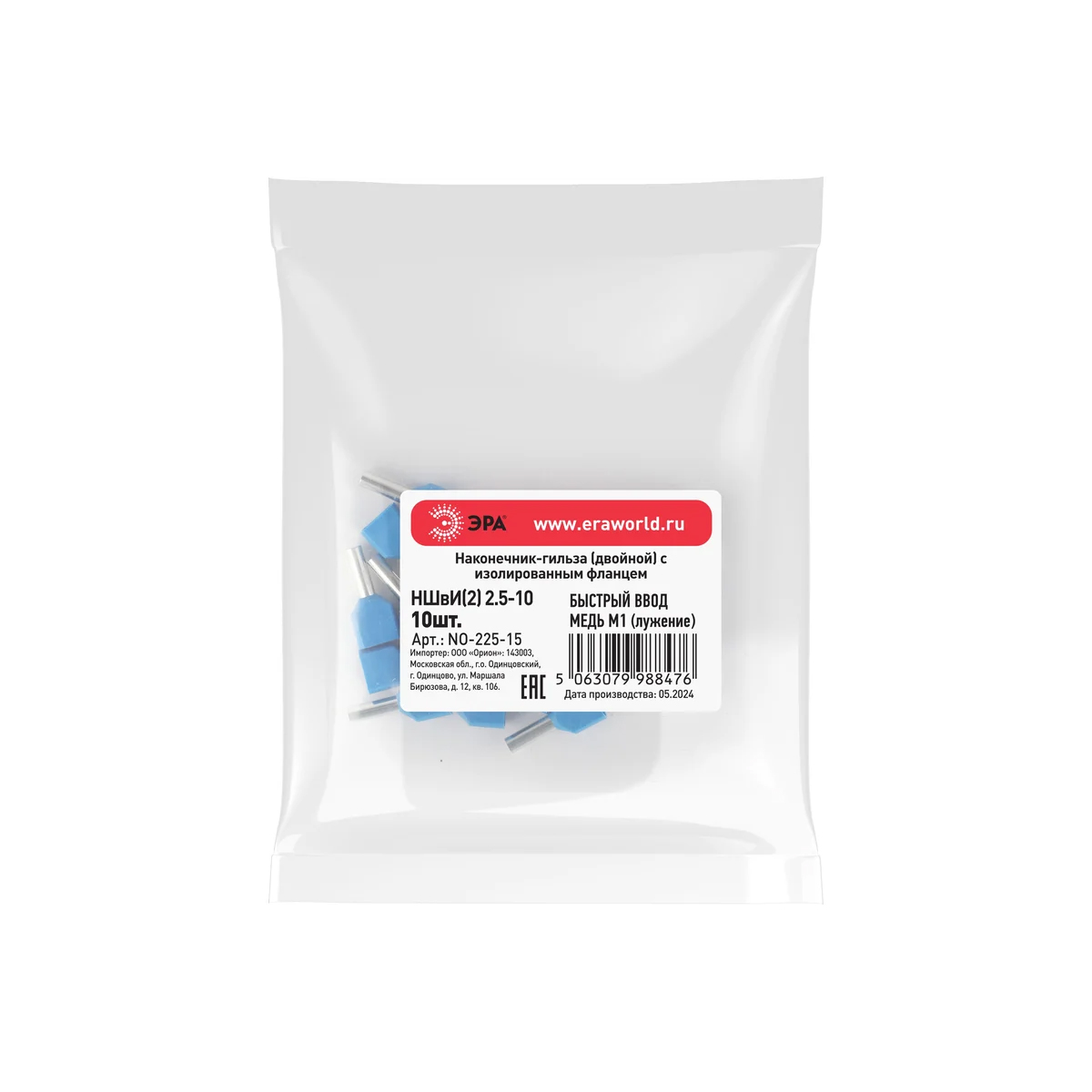 Все характеристики, изображения и описание товара "Наконечник-гильза изолированный (двойной) НШвИ (2) 2.5-10 мм (10 шт) ЭРА" носят