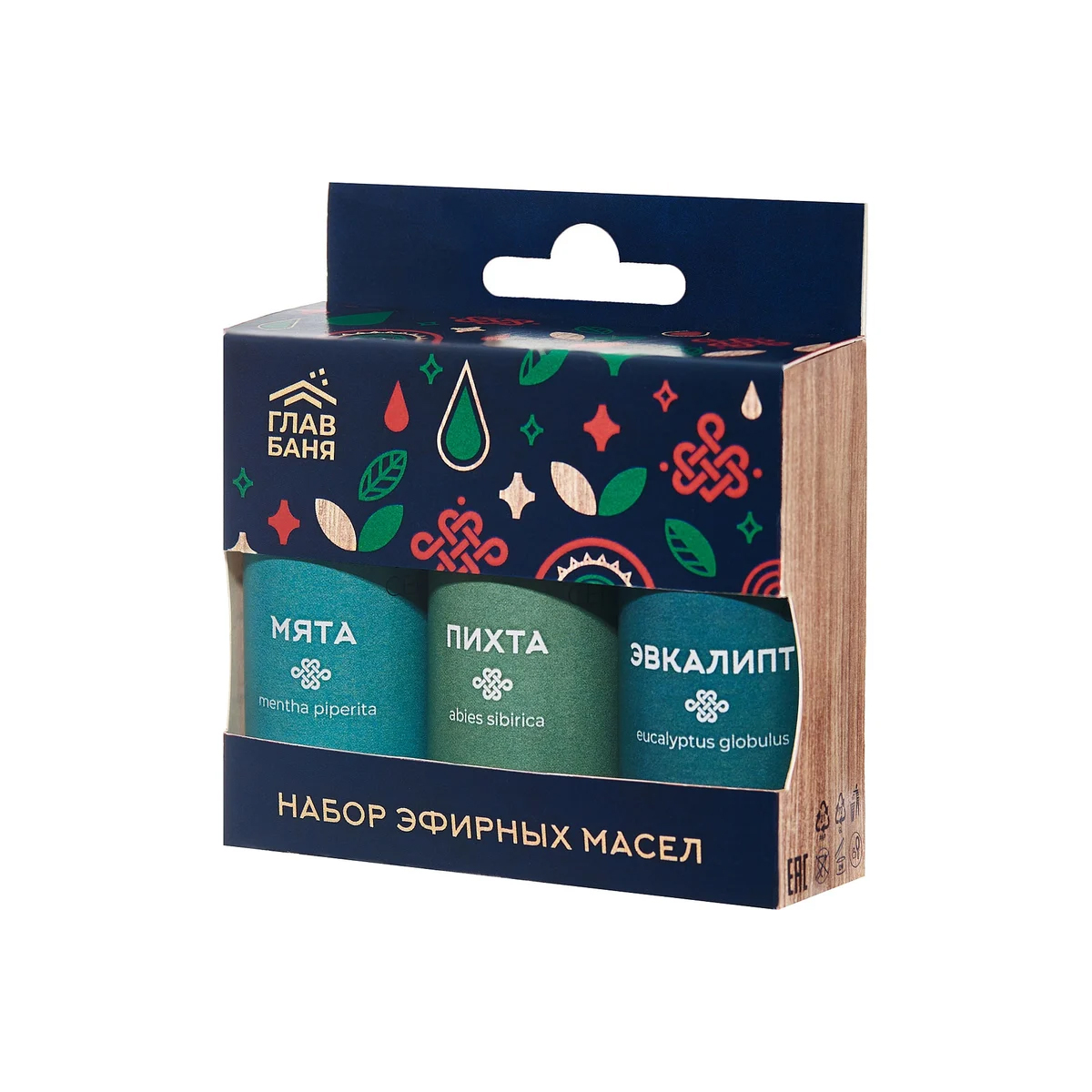 Набор масел эфирных (пихта, мята, эвкалипт) ГлавБаня (3х15 мл)