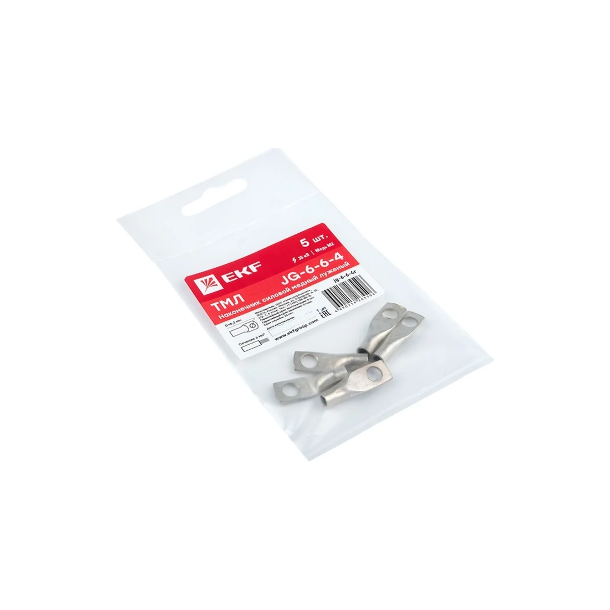 Все характеристики, изображения и описание товара "Наконечник силовой медный луженый ТМЛ JG-6-6-4 для провода 6 мм² (5 шт) EKF PROxima" носят