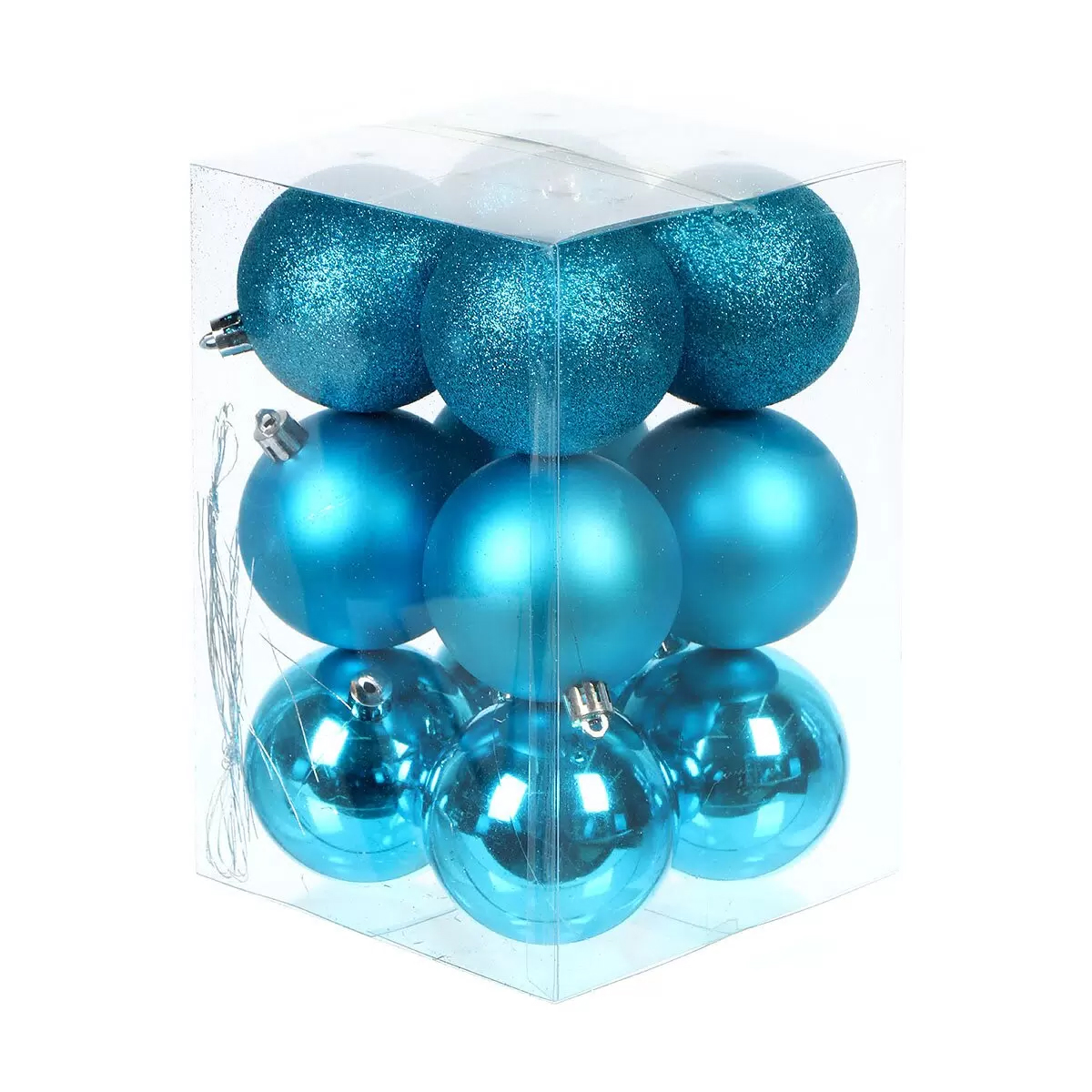 Набор елочных шаров d-6 см, 12 шт, голубой (матов., глянц., блестящ.) SYQA-0123165