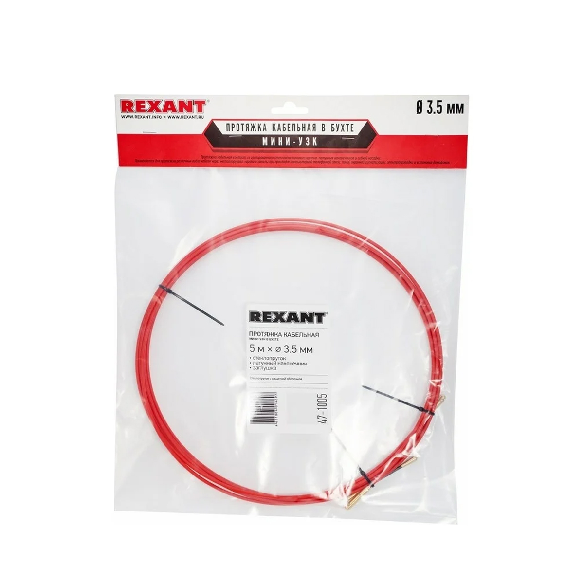 Протяжка кабельная (мини УЗК в бухте) стеклопруток красн. d3.5 мм 5 м Rexant 47-1005