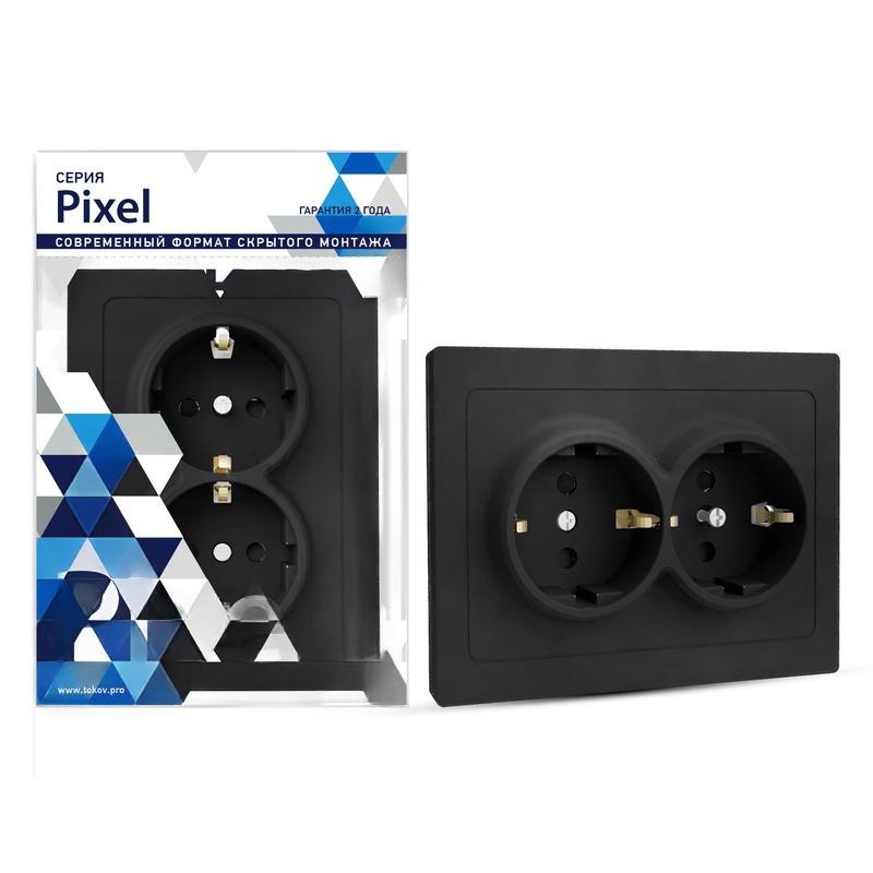Розетка 2-м СП в сборе карбон IP20 16А, с з/к, з/ш TOKOV Electric Pixel TKE-PX-R2FZSF-C14