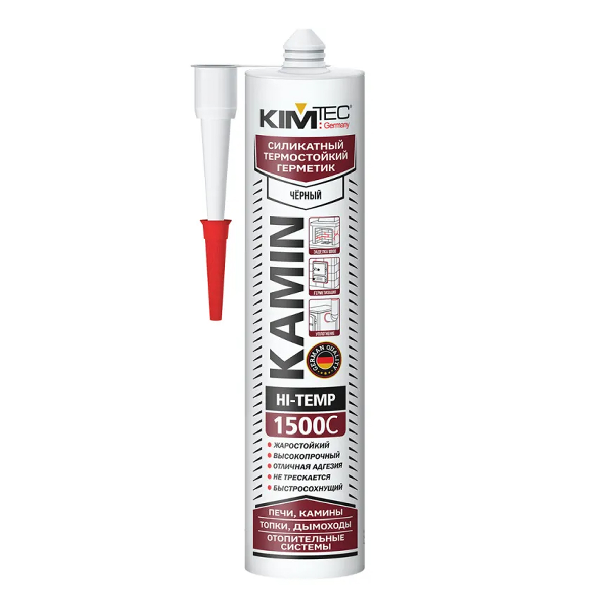 Надёжный термостойкий герметик, предназначен для качественной герметизации и уплотнения неподвижных соединений — швов и стыков, которые испытывают воздействие экстремально высоких температур. После того как герметик полностью полимеризуется, он формирует прочный и жёсткий термостойкий шов. Полученная герметизация сохраняет целостность: не подвержена растрескиванию и не склонна к крошению.