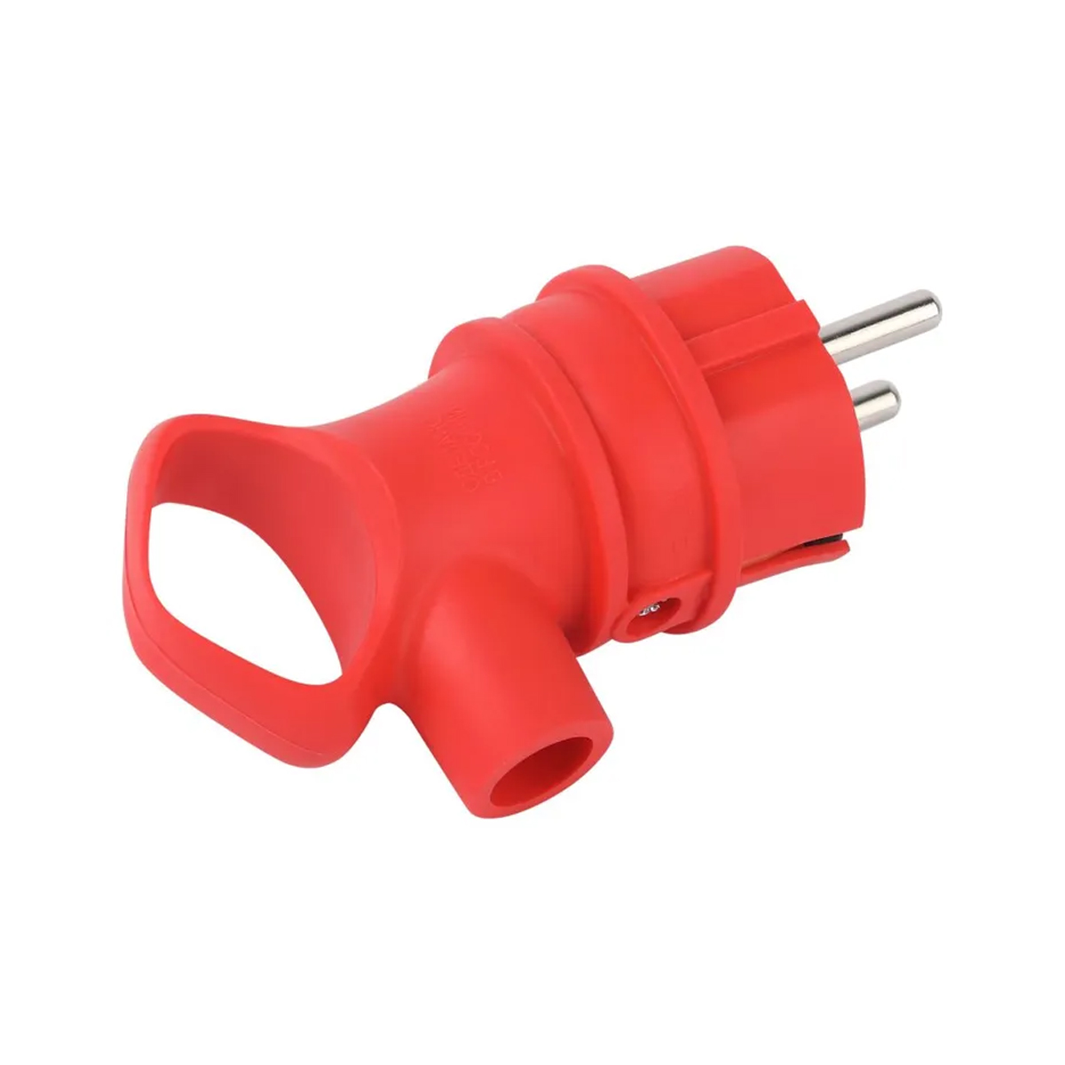 Угловая красная каучуковая вилка с кольцом из серии каучуковых разъёмов ЭРА российского производства. Рассчитана на нагрузку до 16 А и позволяет подключать кабель КГ сечением до 3x2.5 мм2. Вилка с заземлением. Корпус из мягкого и эластичного каучука, степень пыле-влагозащиты IP44.
