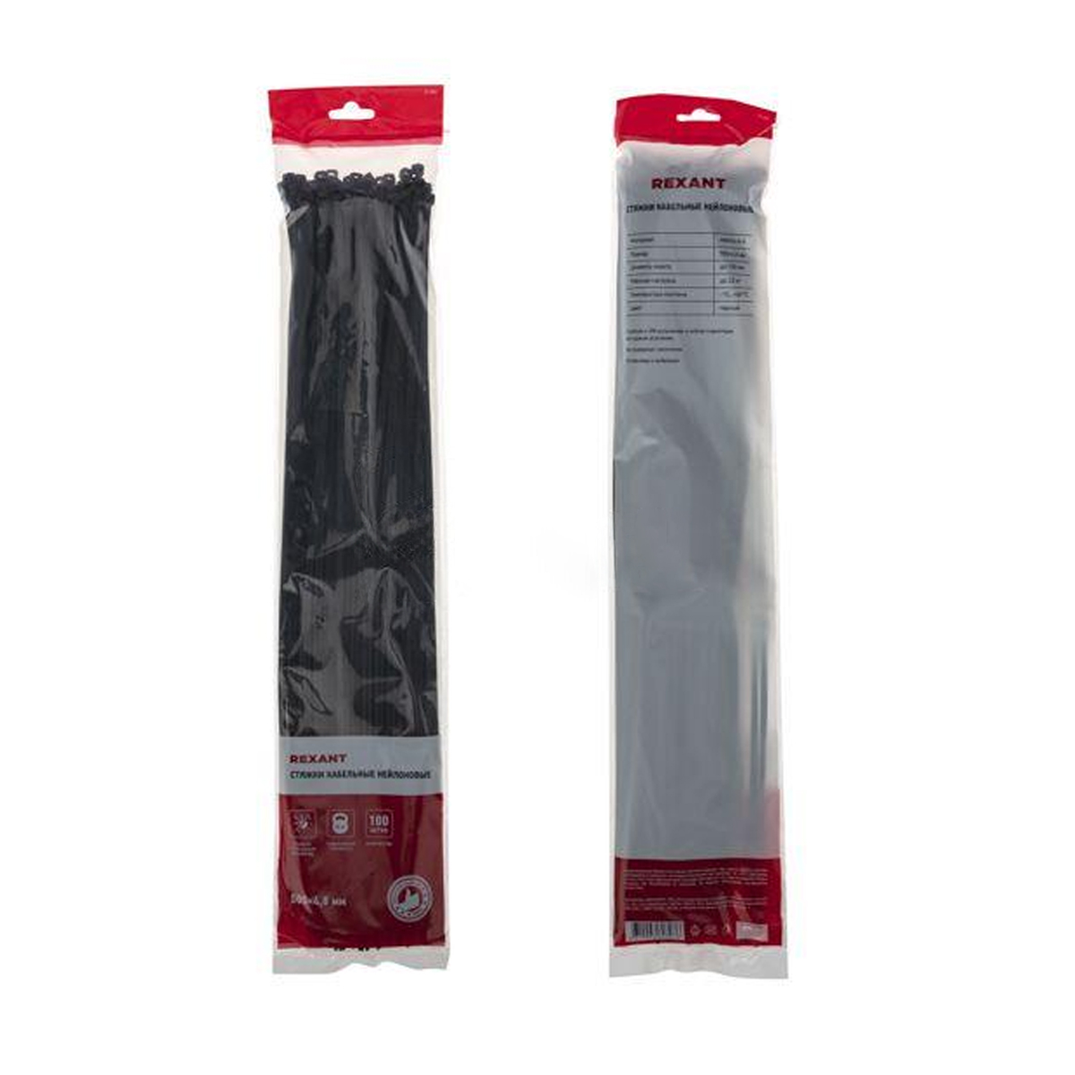 Все характеристики, изображения и описание товара "Стяжка кабельная (хомут) 4.8х500 мм с отверстием (100 шт) черная Rexant" носят