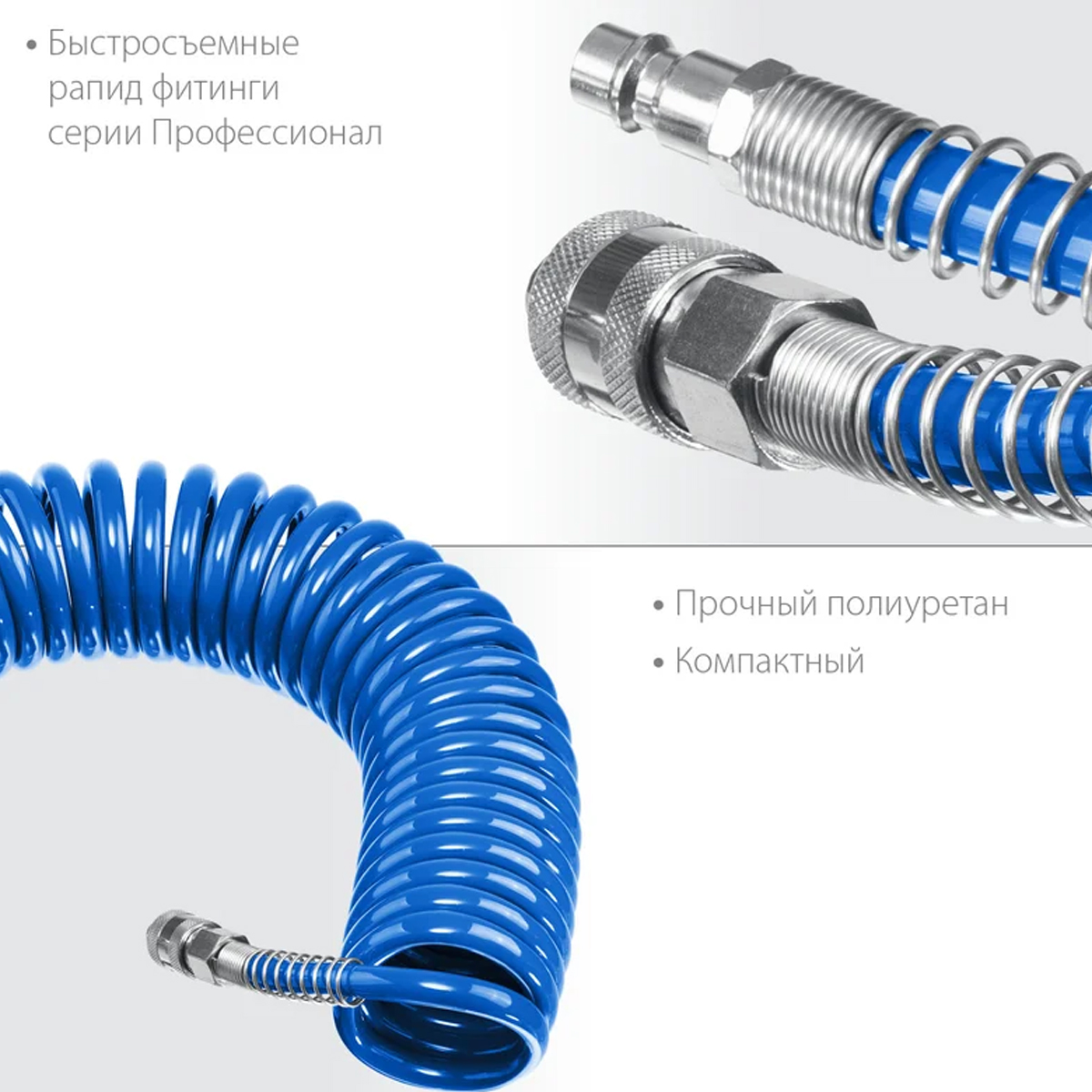 Шланг воздушный спиральный 5 м, с фитингами рапид 6х8 мм Зубр Профессионал 6473-05