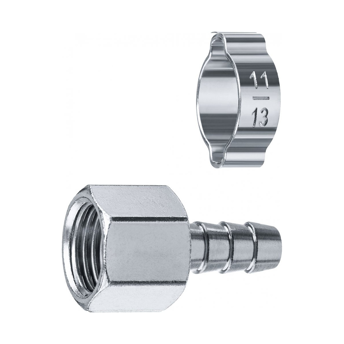 Переходник штуцер "елочка" 8 мм - 1/4"F, с обжимным хомутом ЗУБР предназначен для формирования разнообразных пневмосистем. Высокая точность изготовления обеспечивает надежность и герметичность. Обжимной хомут входит в комплект.