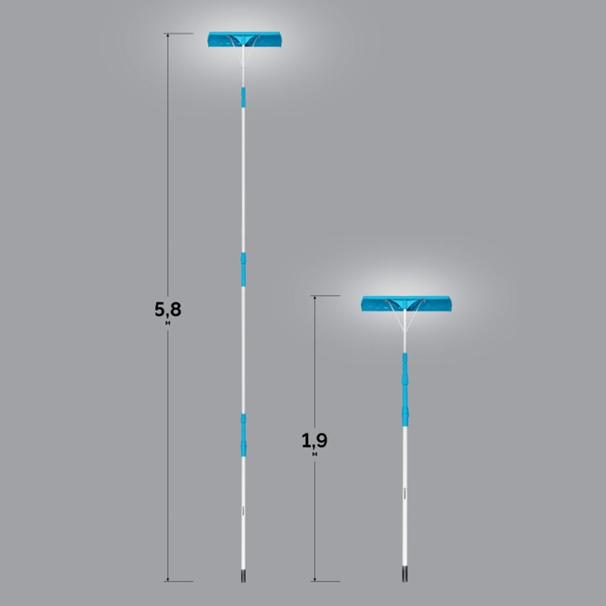 Все характеристики, изображения и описание товара "Скребок для уборки снега с крыш (620х165 мм, телескоп. ручка 1.9-5.8 м) GRINDA PROLine" носят