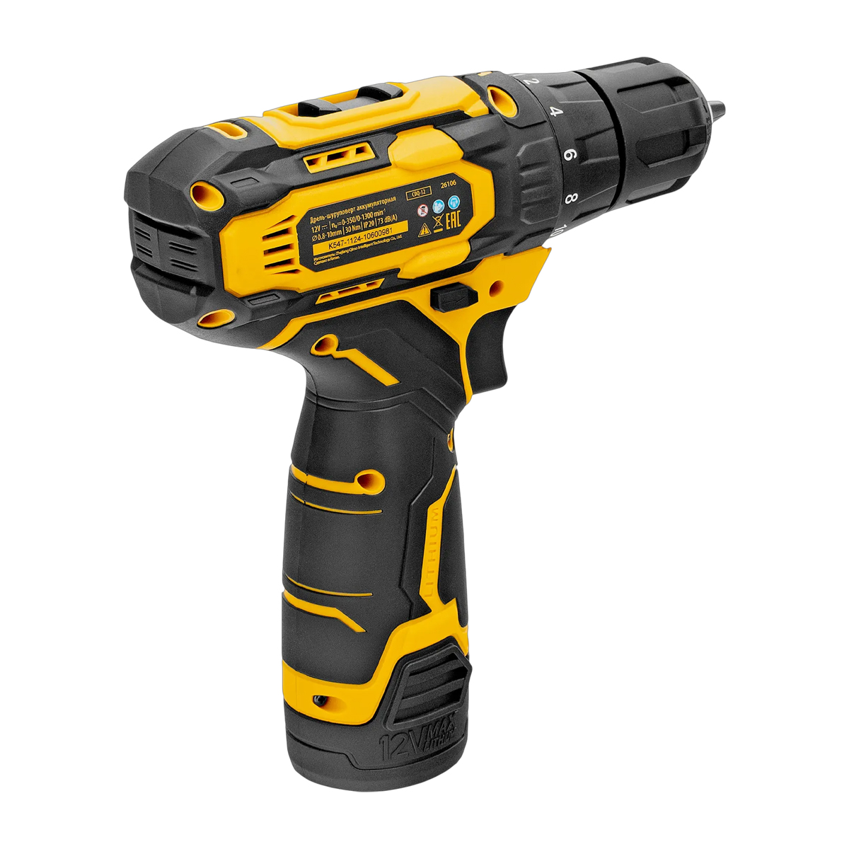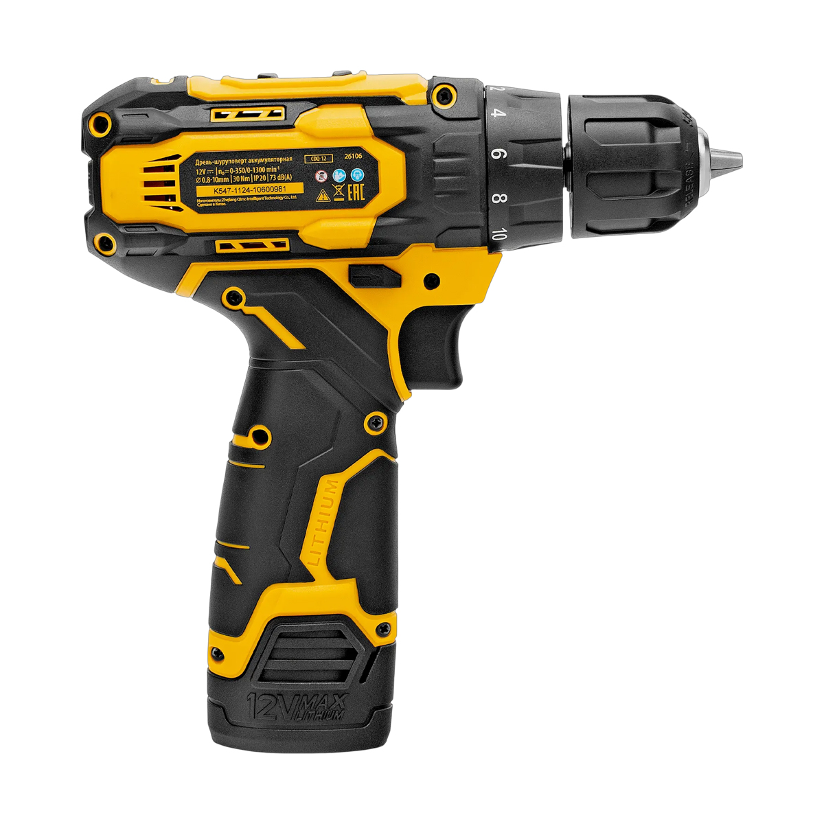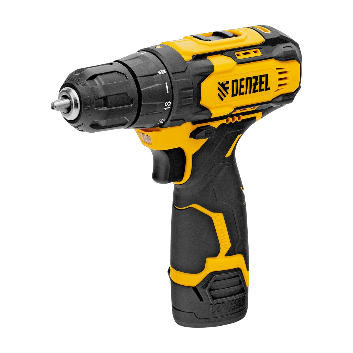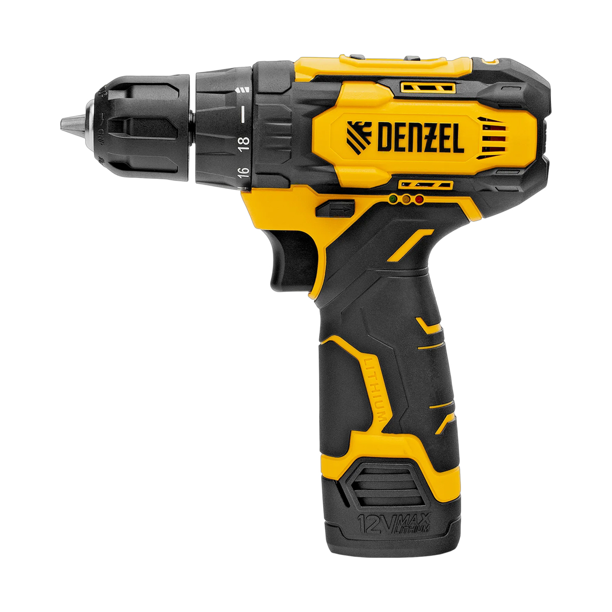 Дрель-шуруповерт аккумуляторная Denzel CDQ-12 работает от Li‑Ion‑аккумулятора 12 В, обеспечивает крутящий момент до 30 Нм, сверлит отверстия до 20 мм в древесине и до 10 мм в металле, подходит для работы с резьбовым крепёжом и различными материалами.