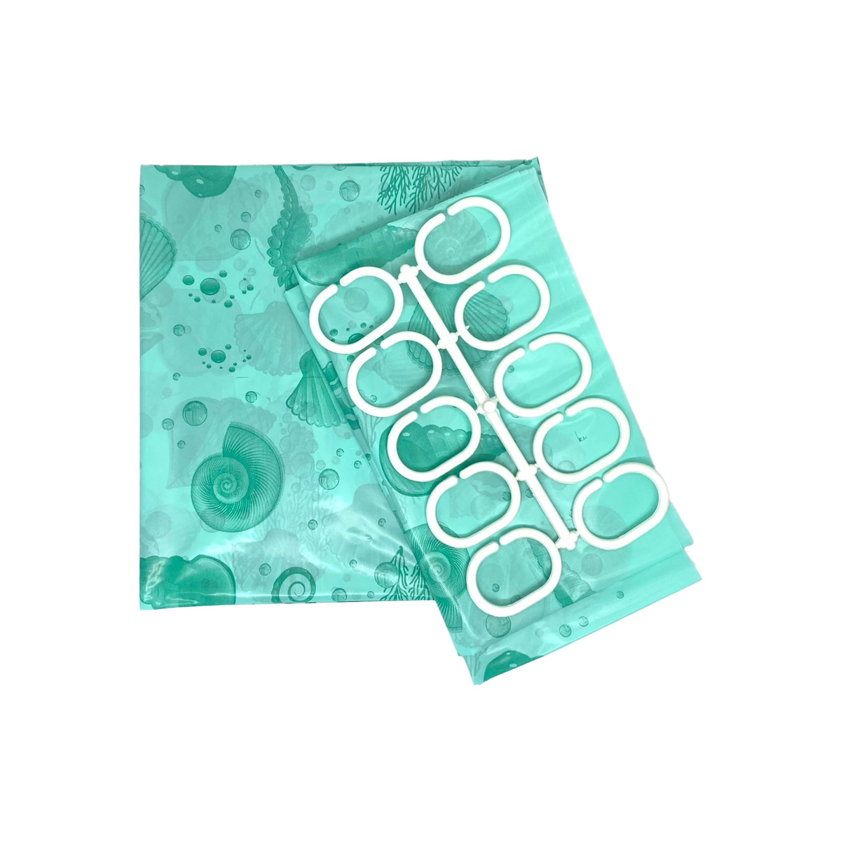 Все характеристики, изображения и описание товара "Штора для ванной 180х180 см (ПВД) в комп. 10 колец, (в ассортименте)" носят