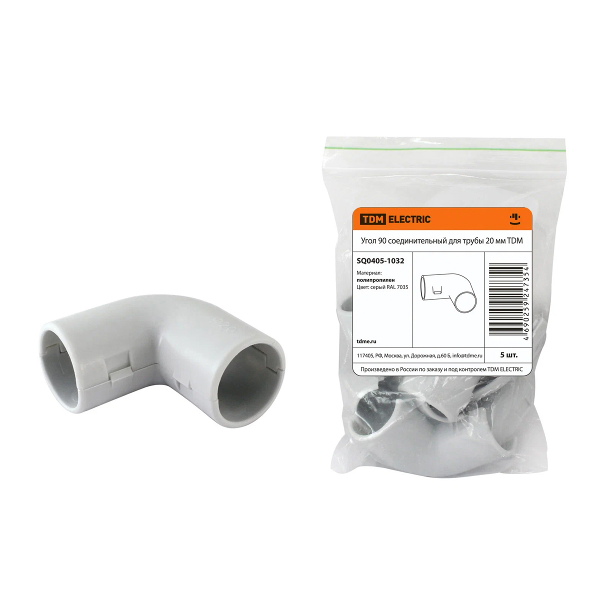 Угол 90 соединительный для трубы 20 мм (5 шт) TDM Еlectric SQ0405-1032 (серый)