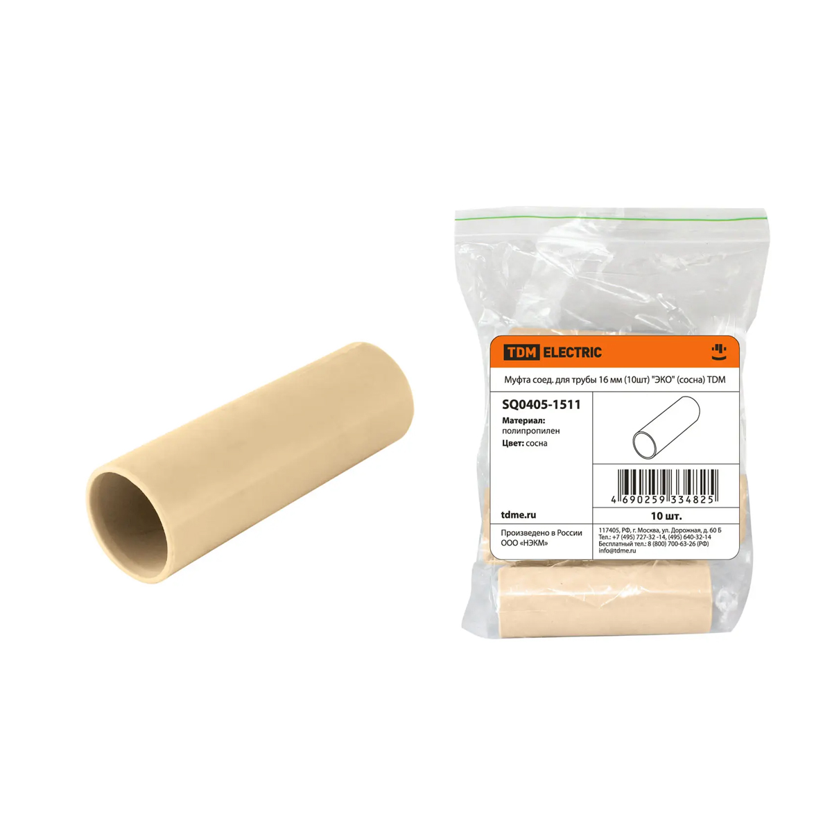 Все характеристики, изображения и описание товара "Муфта соединительная для трубы 16 мм (10 шт) TDM Еlectric "ЭКО" SQ0405-1511 (сосна)" носят