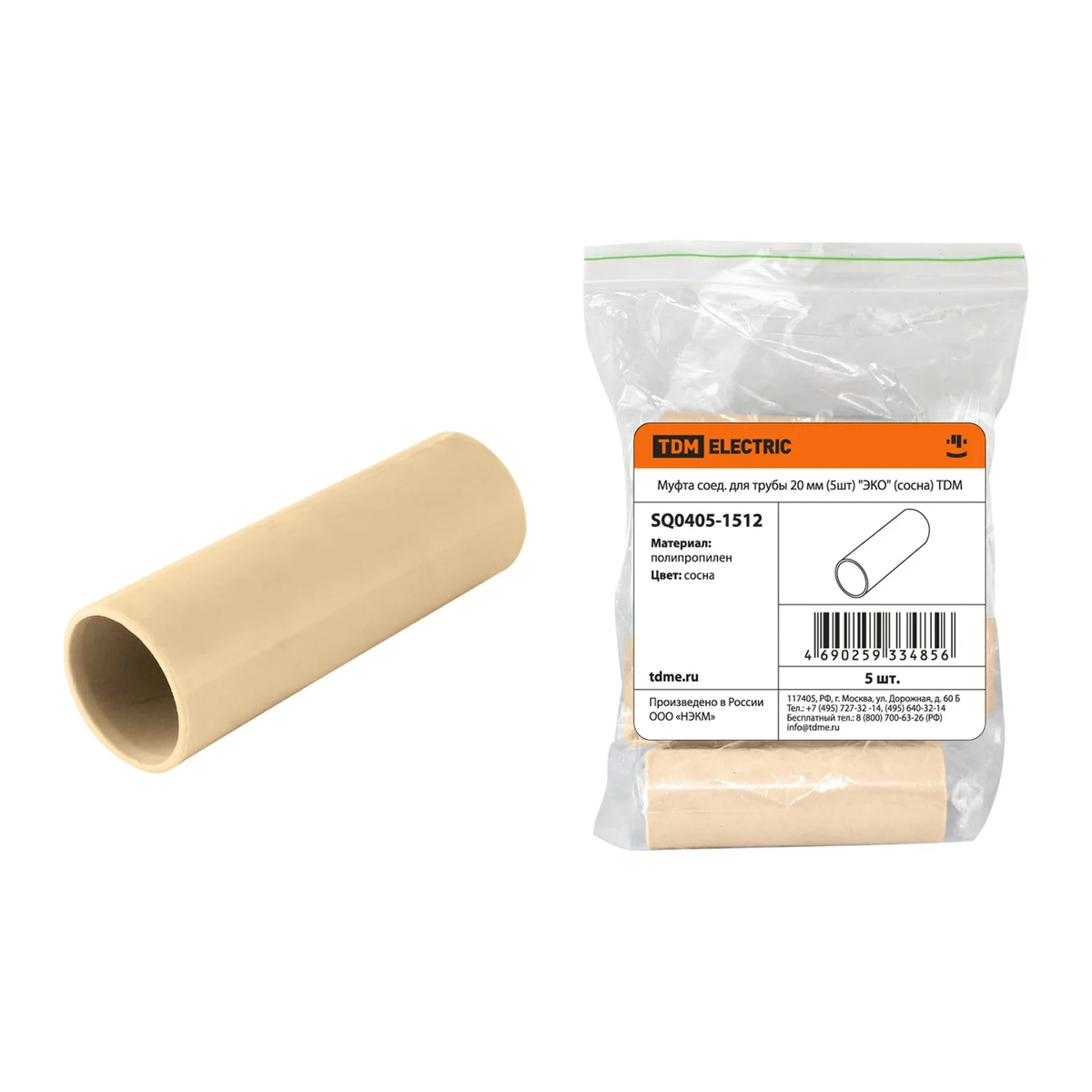 Все характеристики, изображения и описание товара "Муфта соединительная для трубы 20 мм (5 шт) TDM Еlectric "ЭКО" SQ0405-1512 (сосна)" носят