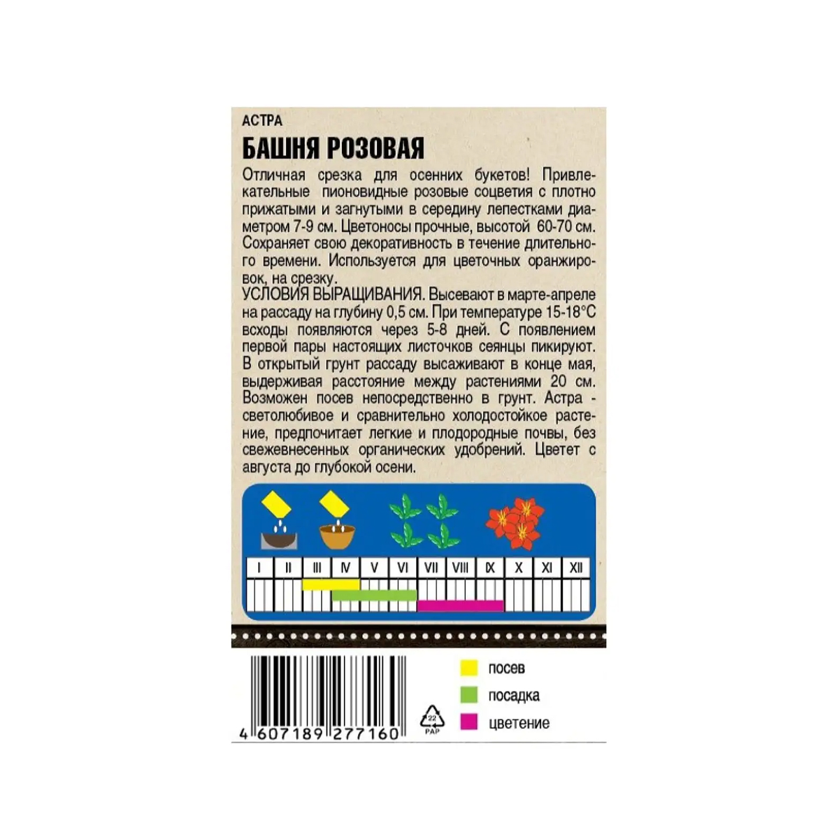 Все характеристики, изображения и описание товара "Семена цветов Астра пионовидная Башня розовая Тимирязевский питомник (0.2 г)" носят