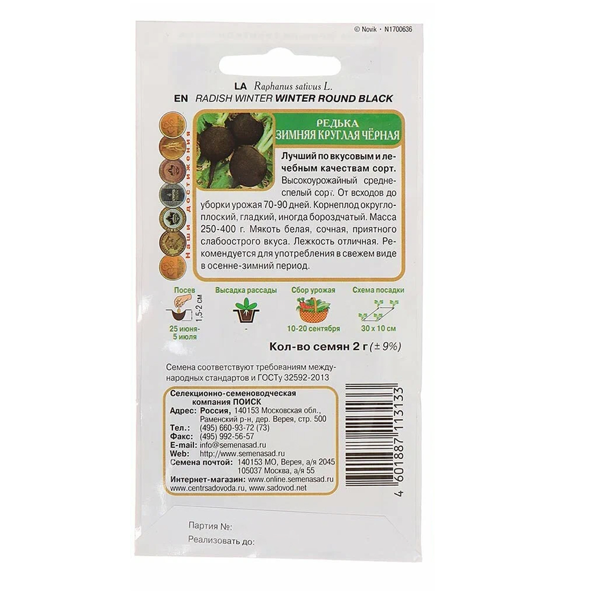 Все характеристики, изображения и описание товара "Семена редька Зимняя круглая черная Поиск (2 г)" носят