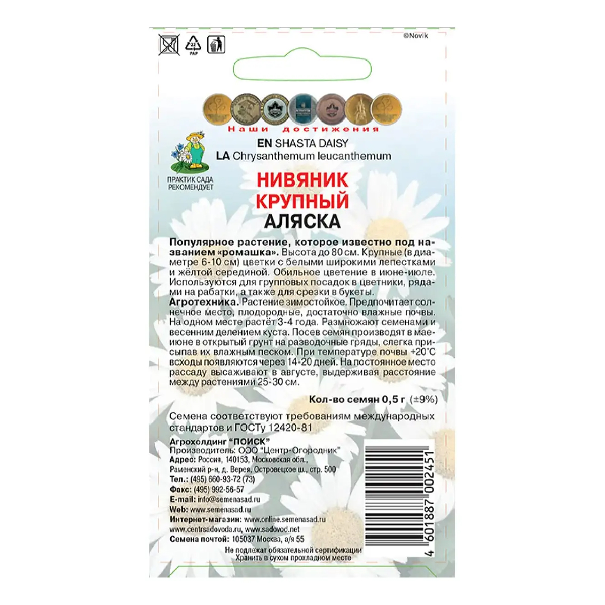 Все характеристики, изображения и описание товара "Семена цветов Нивяник крупный Аляска Поиск (0.5 г)" носят