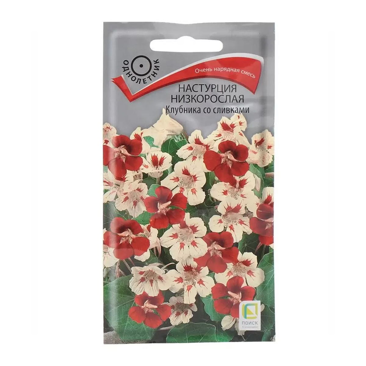 Семена цветов Настурция Низкорослая Клубника со сливками Поиск (1 г)