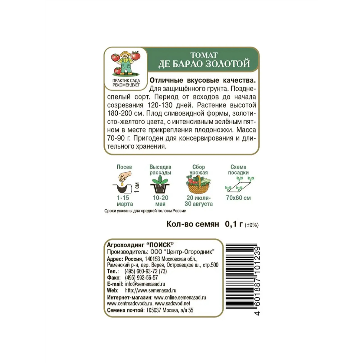 Все характеристики, изображения и описание товара "Семена томат Де Барао золотой Поиск (0.1 г)" носят