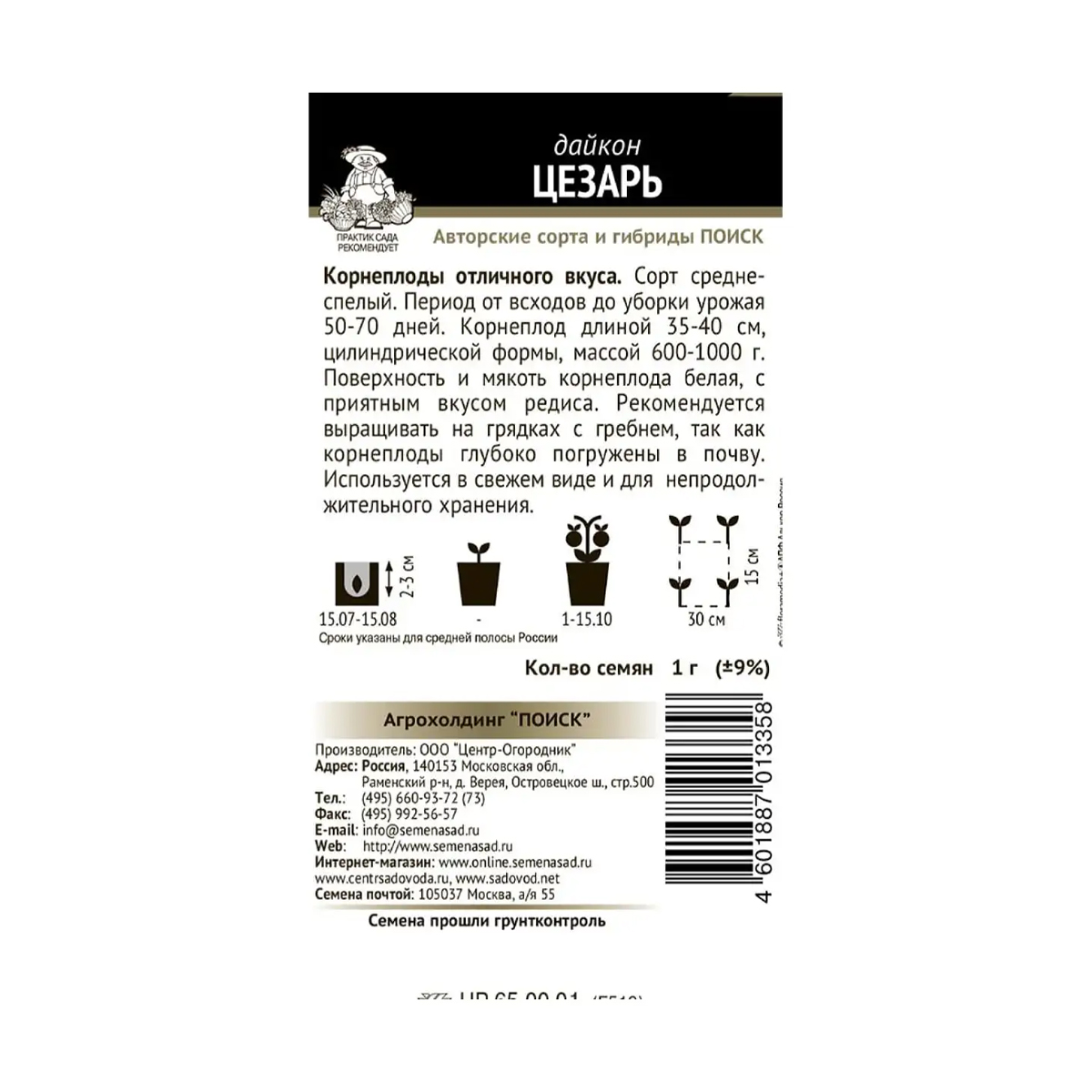 Все характеристики, изображения и описание товара "Семена дайкон Цезарь Поиск (1 г)" носят