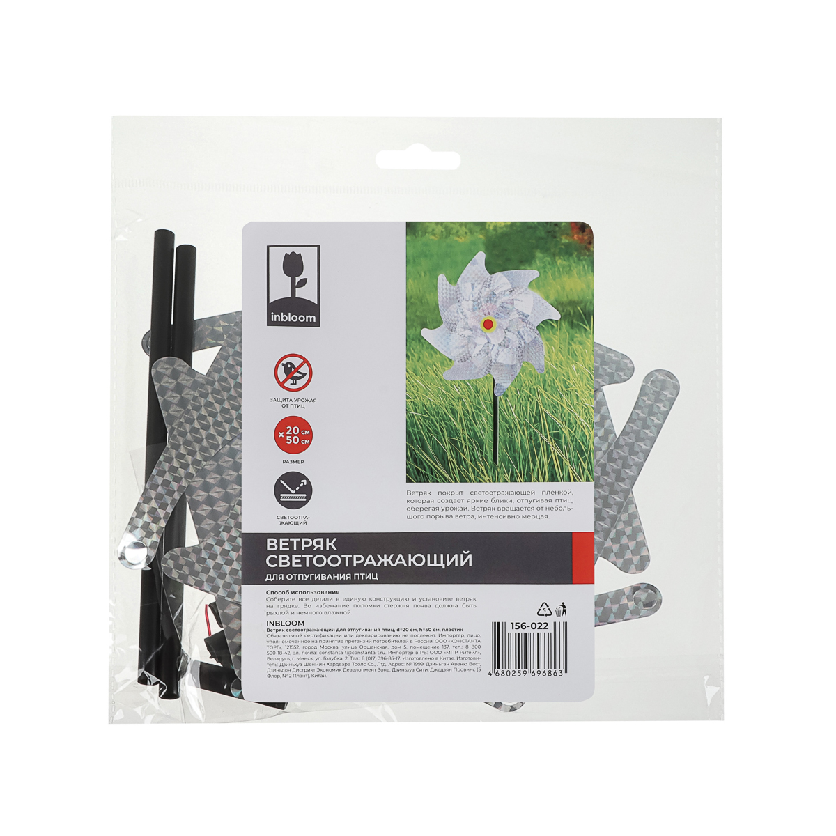 Все характеристики, изображения и описание товара "Ветряк светоотражающий для отпугивания птиц INBLOOM" носят