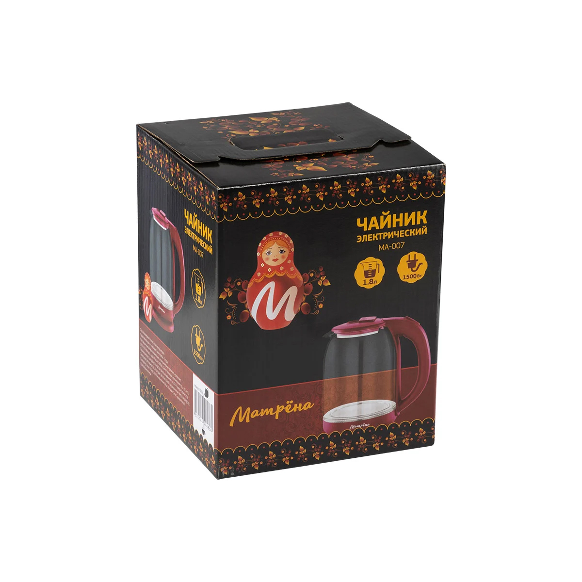 Все характеристики, изображения и описание товара "Чайник электрический Матрёна MA-007 1.8 л стекло, пластик (красный)" носят