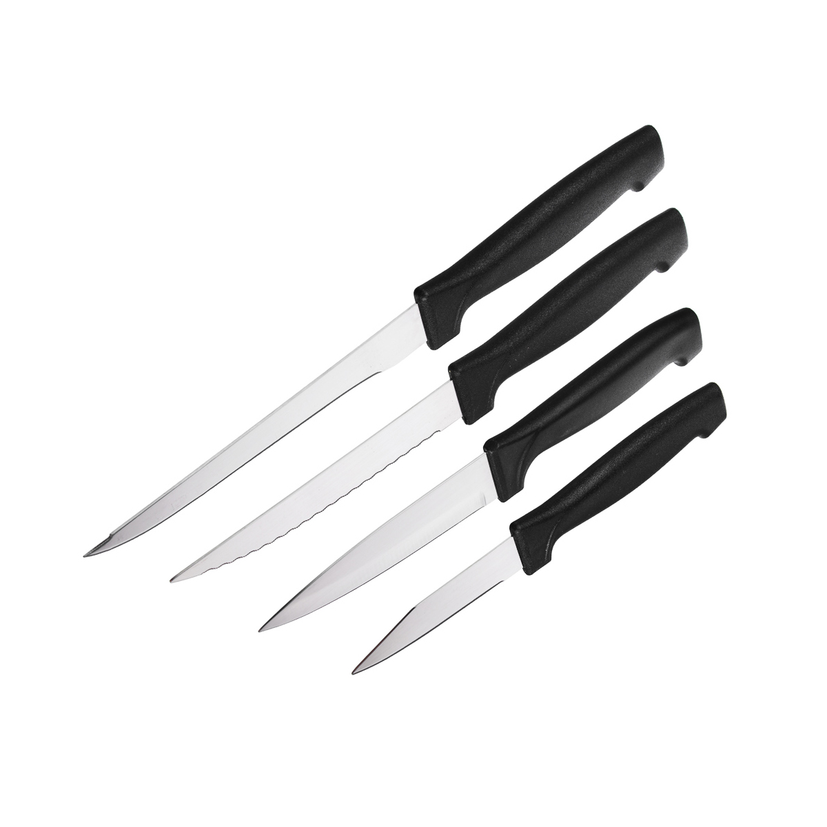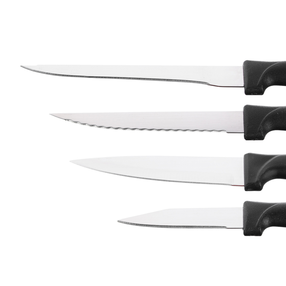 Набор из 5 предметов в деревянной подставке - идеальный выбор для любой кухни! В комплект входят ножи различных размеров: 7,5 см, 11,5 см, 12 см, 14 см, а также ножницы. Лезвия из нержавеющей стали имеют острую заводскую заточку, не подвержены коррозии. Эргономичные ручки гарантируют удобный и безопасный захват во время работы. Набор станет отличным дополнением к любой кухне и позволит вам с легкостью решать различные кулинарные задачи - от нарезки овощей до разделки мяса. Деревянная подставка не только обеспечивает удобное хранение ножей, но и придает набору стильный и элегантный вид.