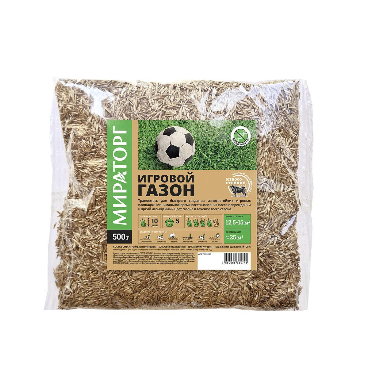 Все характеристики, изображения и описание товара "Семена газонной травы Мираторг Игровая (0.5 кг)" носят