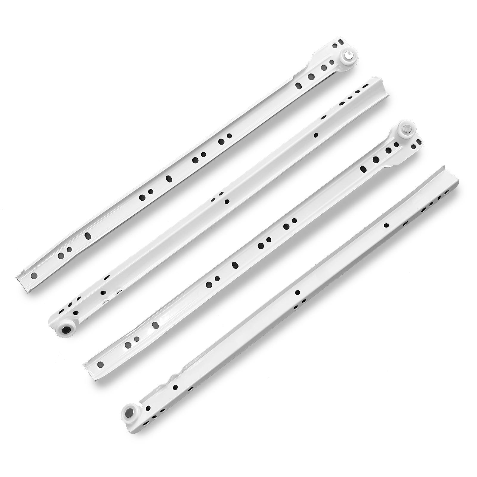 Комплект для выдвижных ящиков. Обеспечивает плавное и бесшумное скольжение. Подходит для мебели (комоды, тумбы, шкафы). Белый цвет делает их незаметными на фоне светлых фасадов.