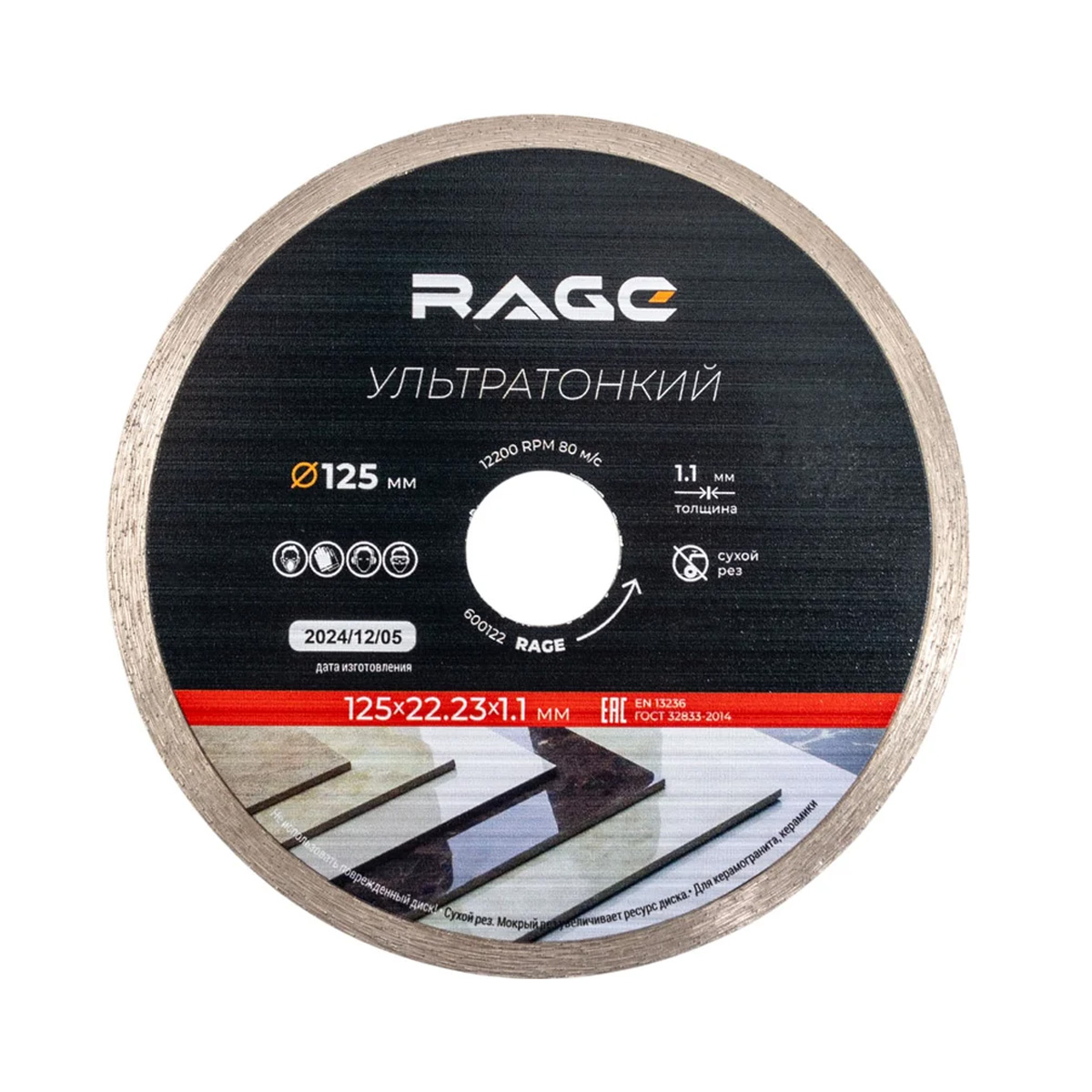 Все характеристики, изображения и описание товара "Диск алмазный сплошной ультратонкий 125х22.2 мм RAGE по керамограниту" носят