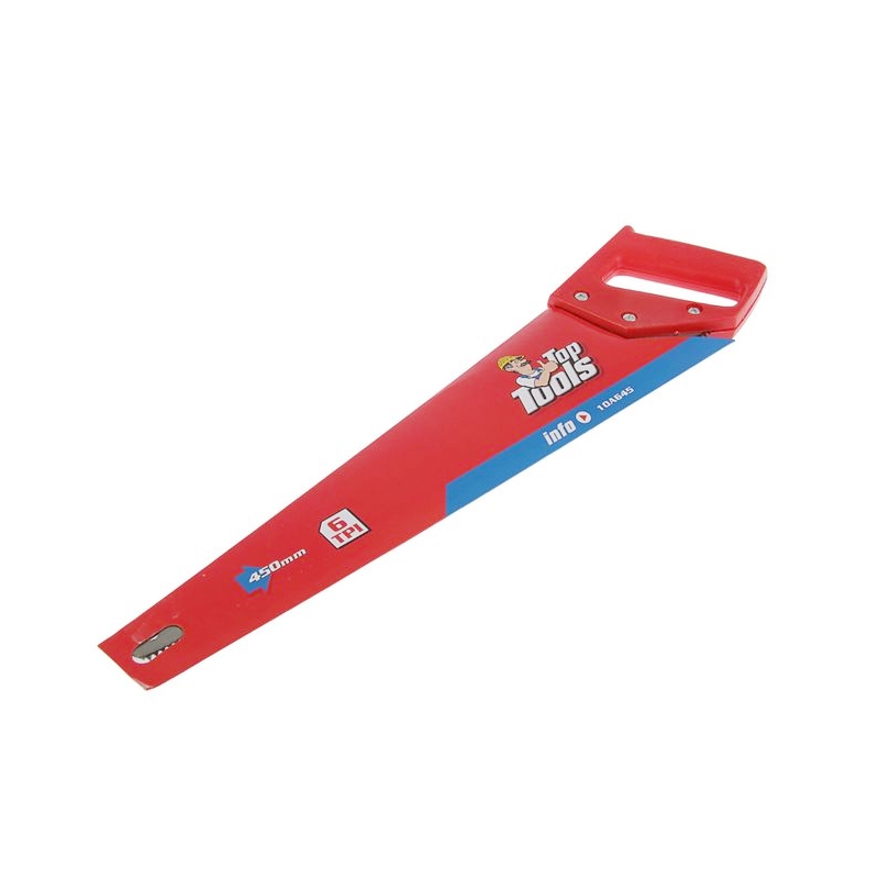 Все характеристики, изображения и описание товара "Ножовка (пила) по дереву 450 мм 6 TPI Top Tools" носят