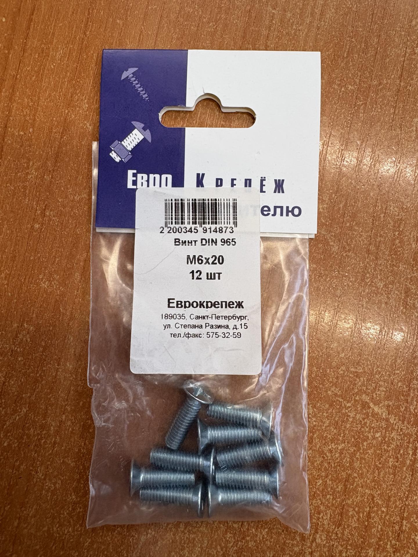 Все характеристики, изображения и описание товара "Винт М6х20 мм DIN 965 с потайной головкой цинк (12 шт) УЦЕНКА*" носят
