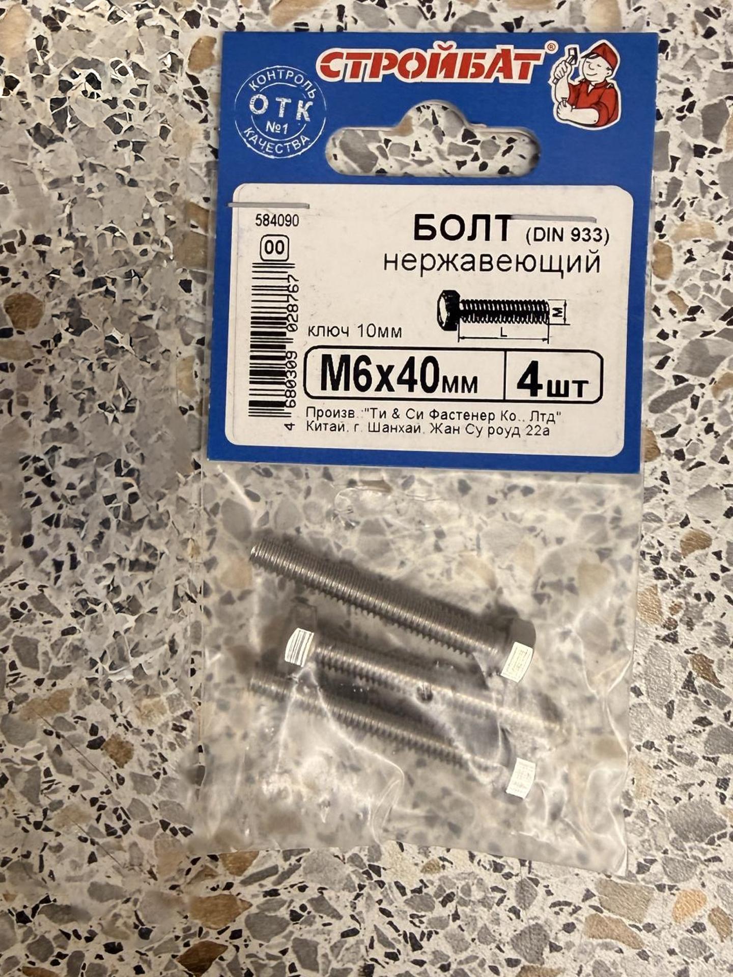 Все характеристики, изображения и описание товара "Болт М6х40 мм DIN 933 нержавеющая сталь (4 шт) УЦЕНКА*" носят